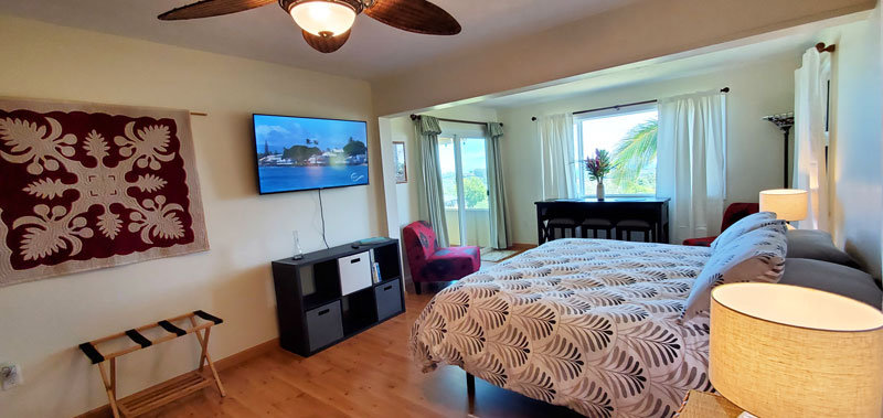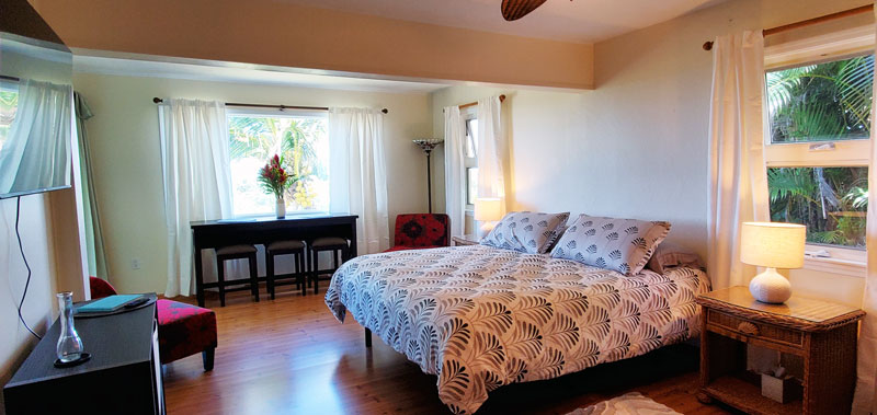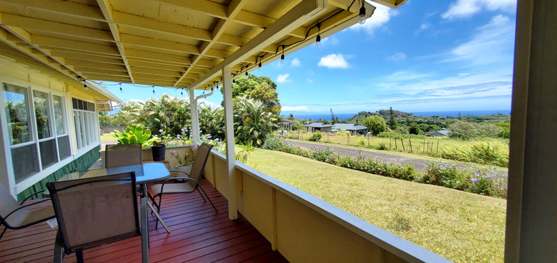 A casual studio with a classy interior and stunning panoramic views upcountry in Haiku.