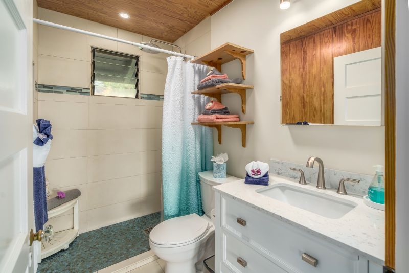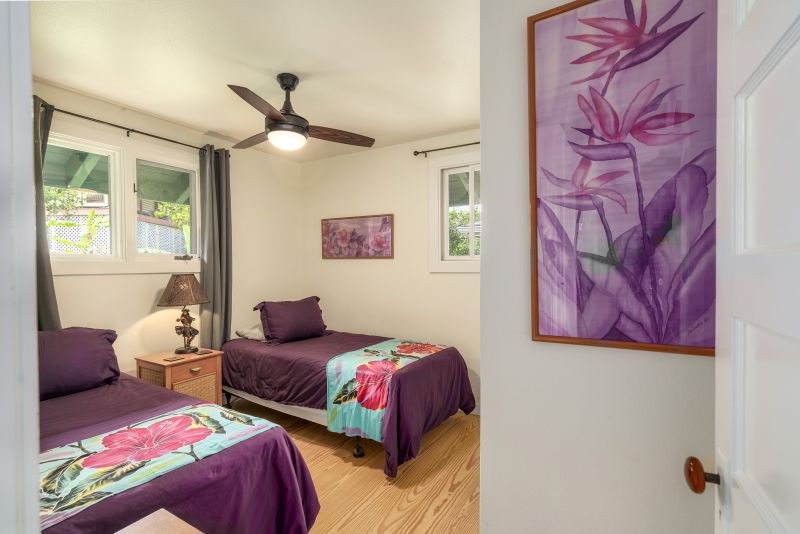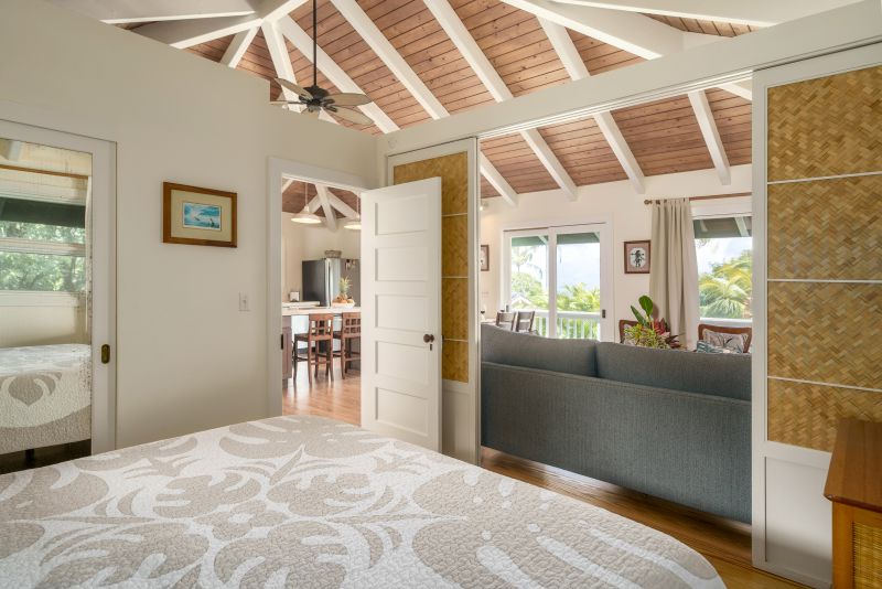 - Ceiling fans, but hardly needed with the open/airy interior that allows in the breezy trades