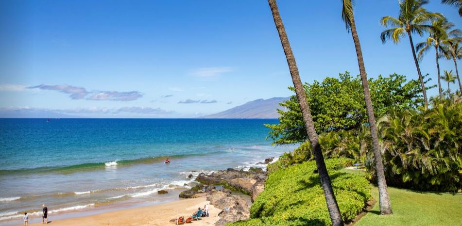 Beachfront high-rise of 2-bedroom condos with beach walk access to the rest of Wailea.